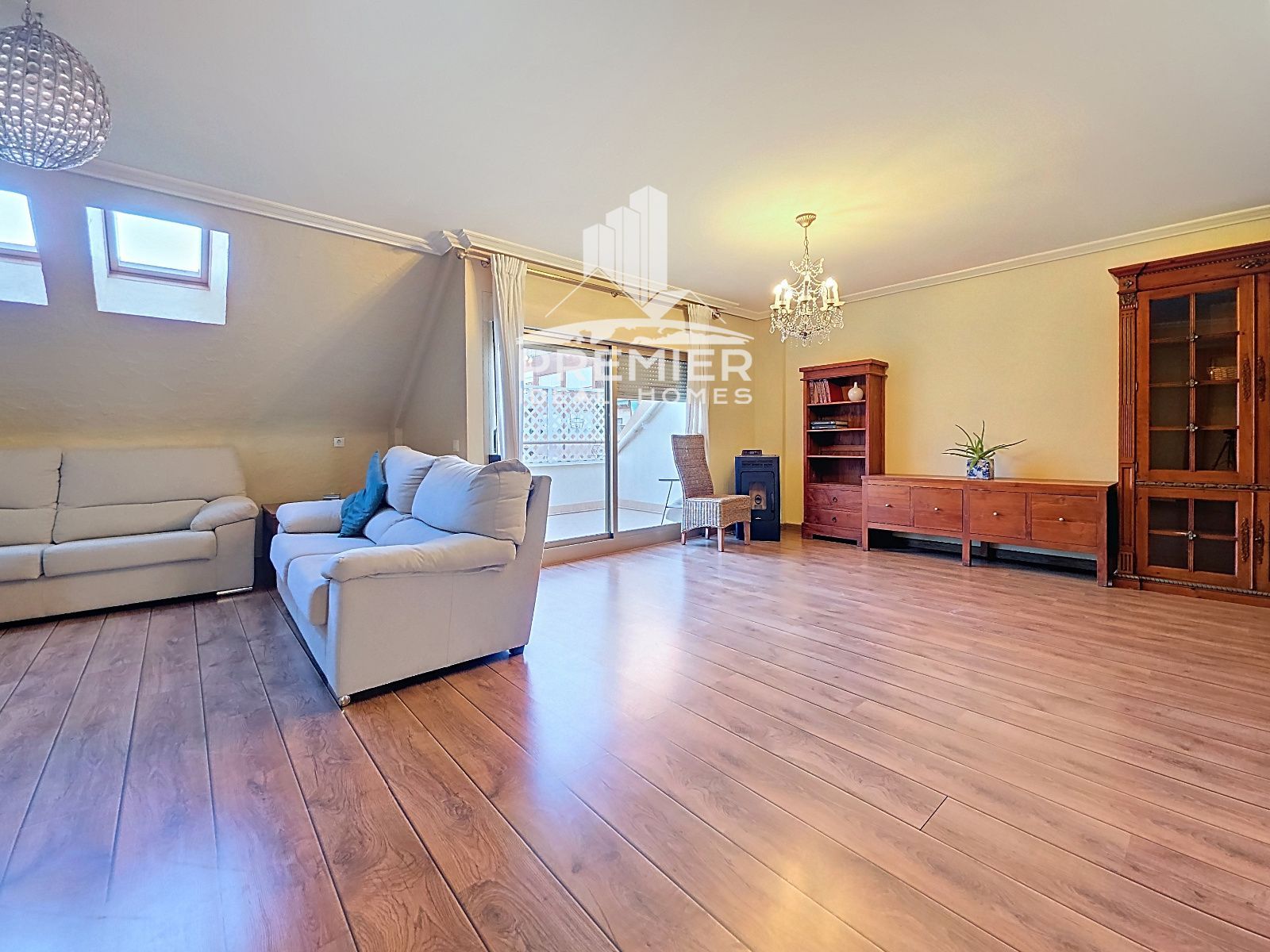 La vivienda destaca por su tarima en toda la casa, excepto en la cocina, baños y terrazas, que le aporta un toque de elegancia y calidez. La abundante luz natural inunda cada rincón de este ático dúplex, creando un ambiente luminoso y acogedor.