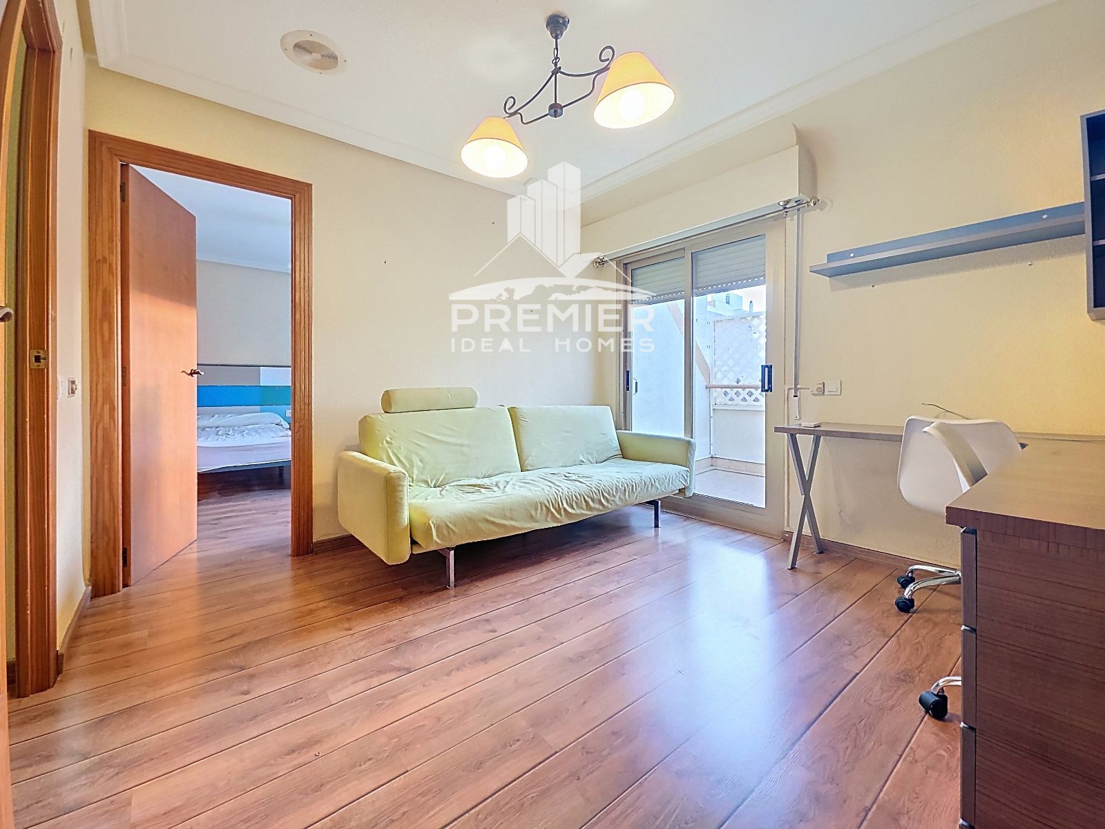 El segundo dormitorio es amplio y versátil, perfecto como despacho, con acceso a su propia terraza. El tercer dormitorio es sencillo y funcional. Además, en esta planta, hay un aseo de dos piezas y un armario empotrado para la ropa de cama y toallas.