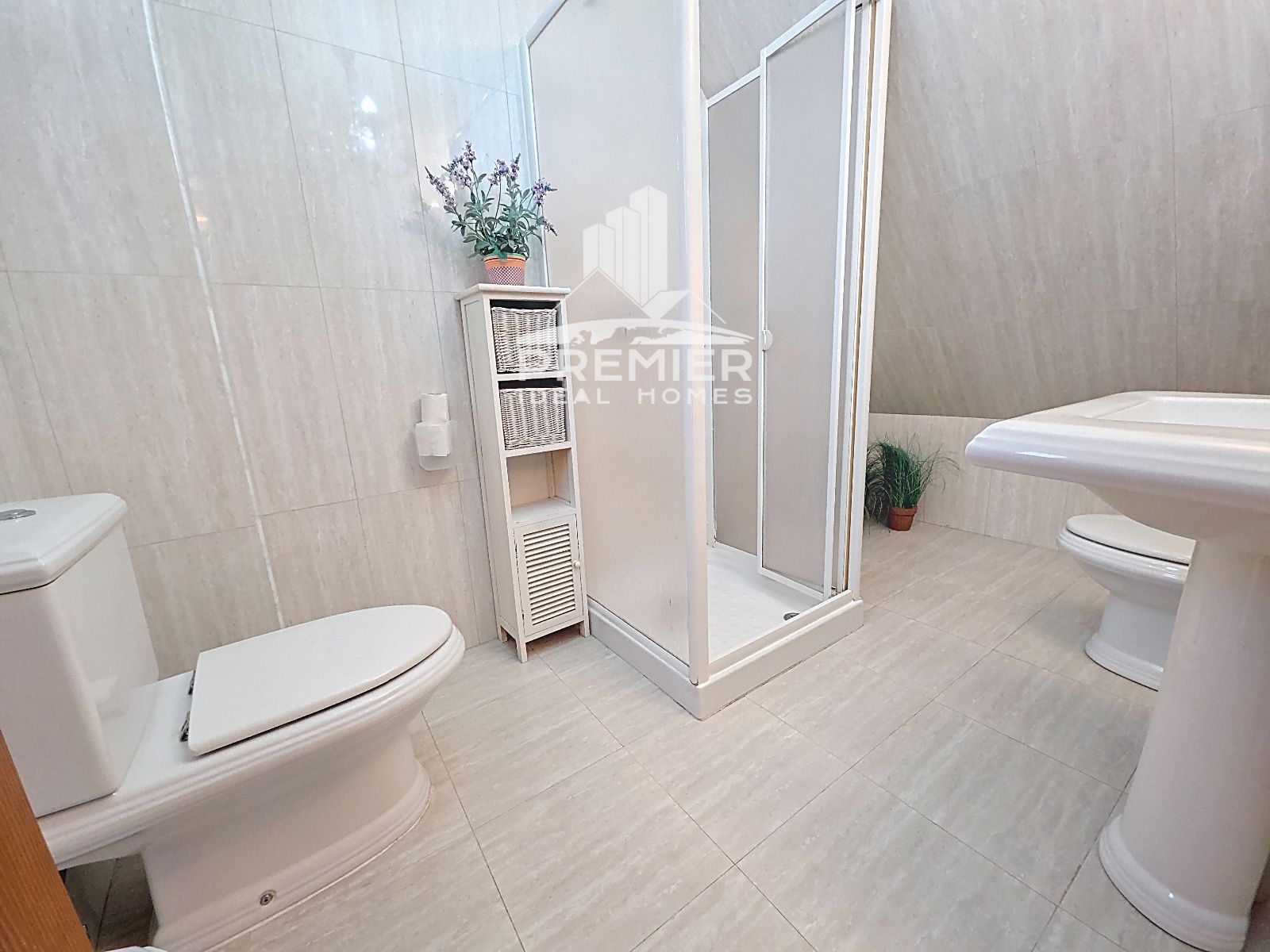 En la planta principal, encontrarás dos habitaciones, cada una con acceso a su propia terraza y amplios armarios empotrados. El baño completo de 5 piezas con ducha es un verdadero lujo. La cocina, con su galería, es un espacio funcional y luminoso, ideal para cocinar y disfrutar de comidas en familia.